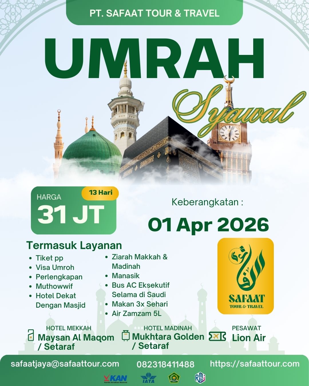 BERIKUT FASILITAS DARI PAKET UMROH HEMAT 12 HARI :